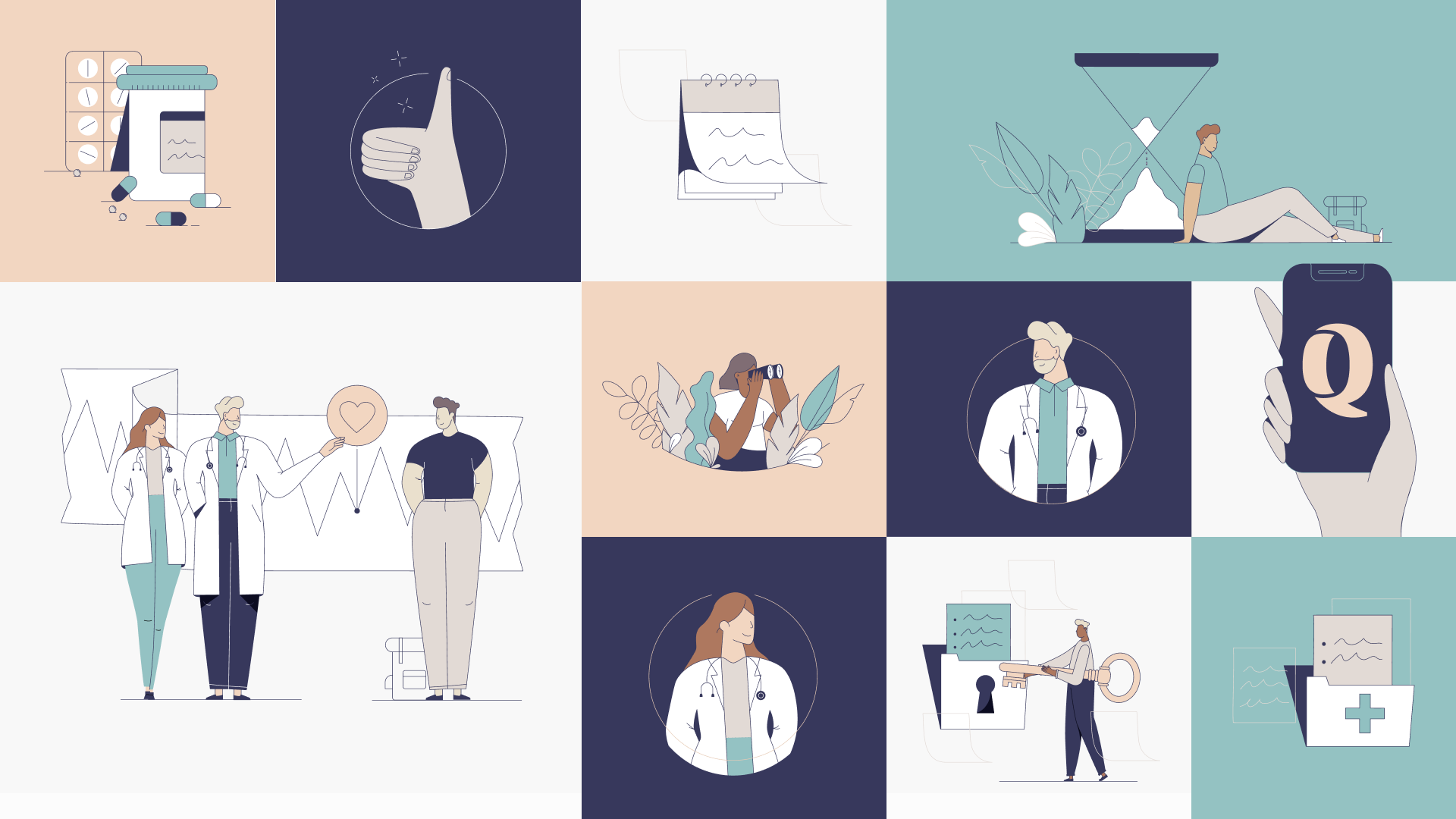 In parallel with the digital launch, Quin opened its first physical GP practices. These clinics are part of the same story yet have their own character, so they needed a related identity and house style. We designed a system that keeps the connection obvious across app, web and clinic, while giving each practice the room to reflect its local context. Two halves of the same brand, working together.