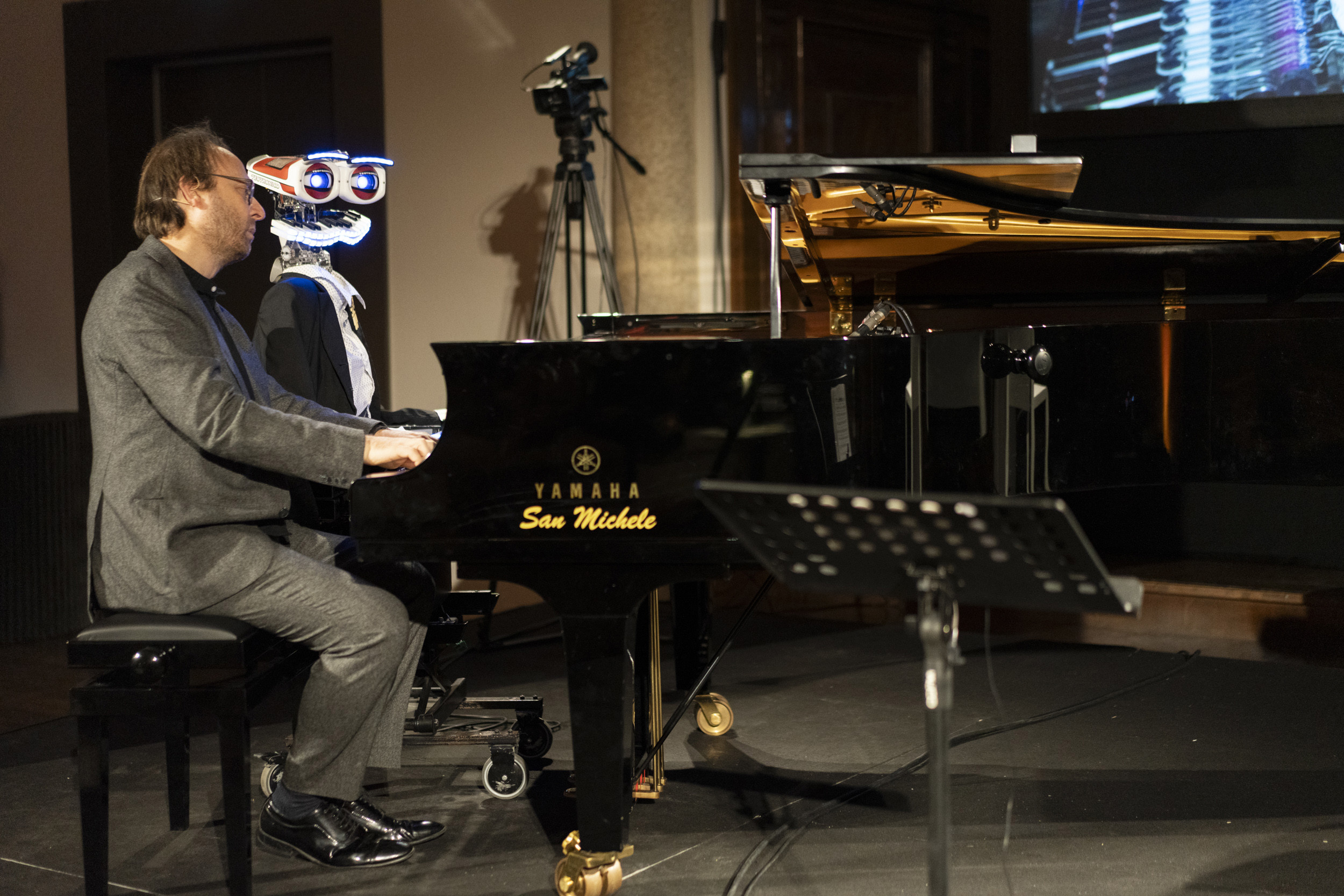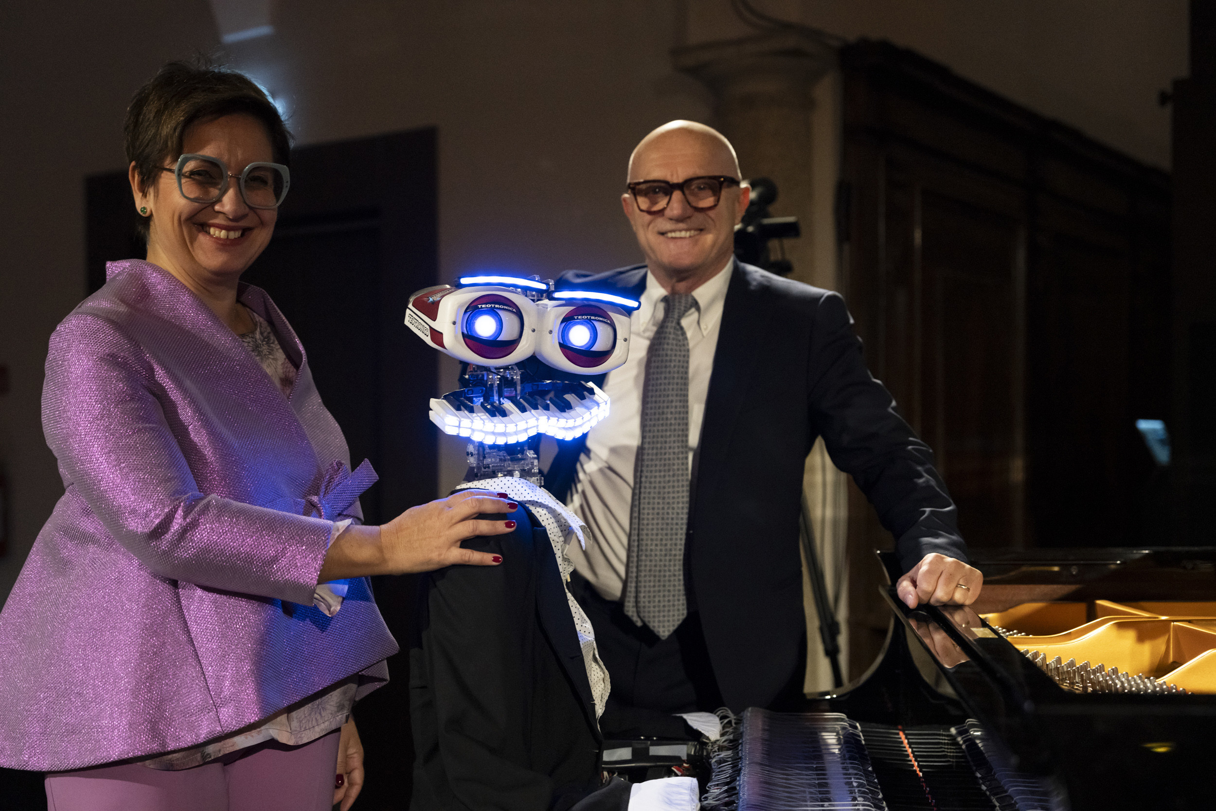 During the event, our CEO Francesca Gabrielli highlighted our innovative research and development of hybrid solutions, never forgetting the importance of the human touch. Her words were complemented by the captivating performance of pianist Prosseda and his intriguing Teotronico robot. Playing iconic pieces such as Chopin and the Turkish March, their musical interlude sparked a profound reflection on the intersection of AI and human sensibility, technology and soul.
